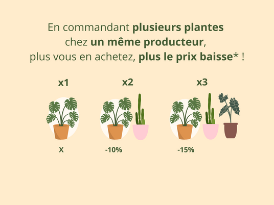 Il vous suffit de mettre en panier au minimum 2 plantes du même producteur afin de bénéficier de réduction.